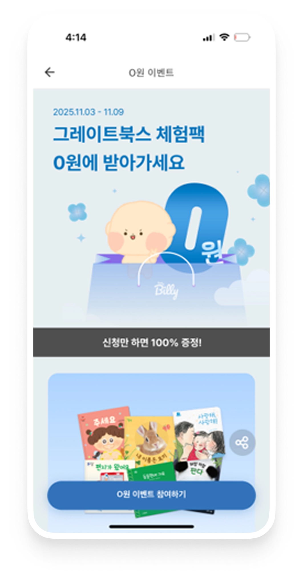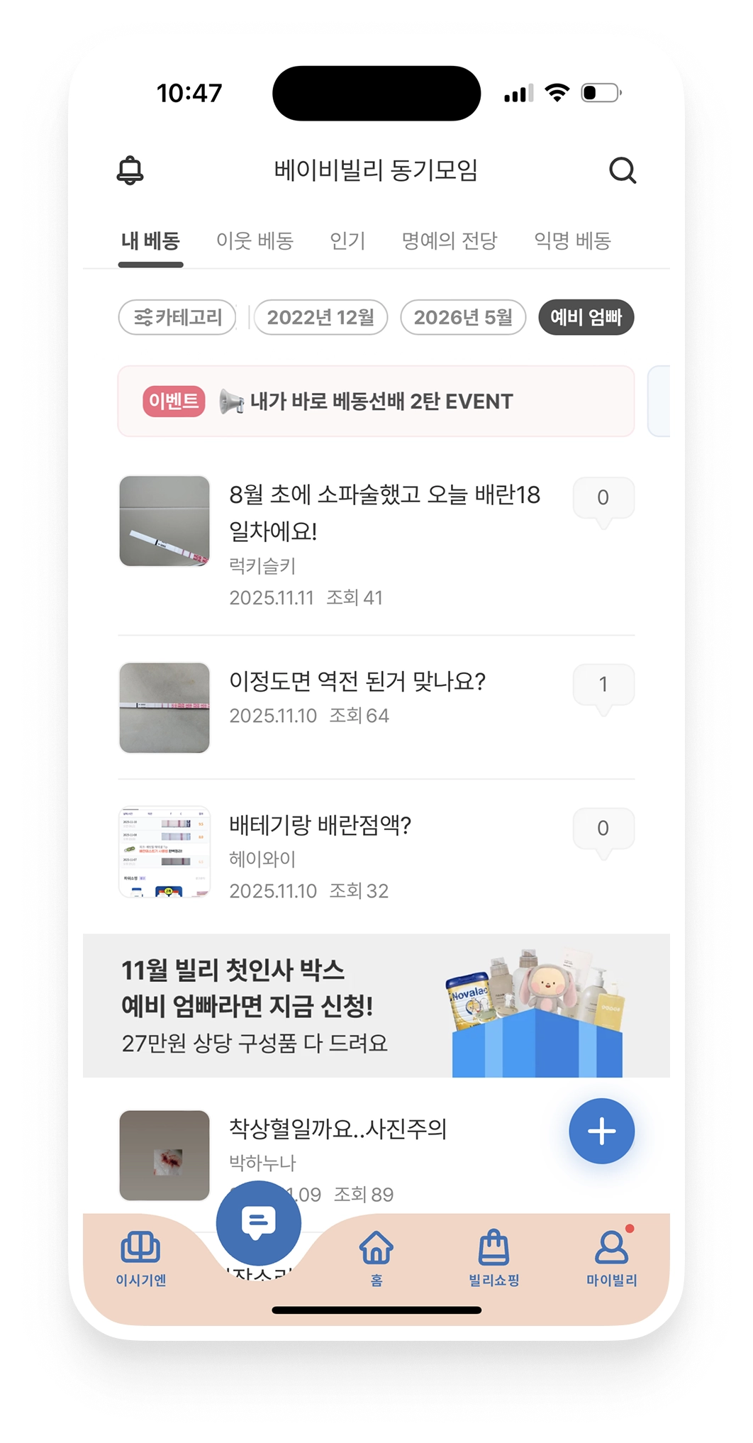 베이비빌리 ‘0원 이벤트’ 영역 노출