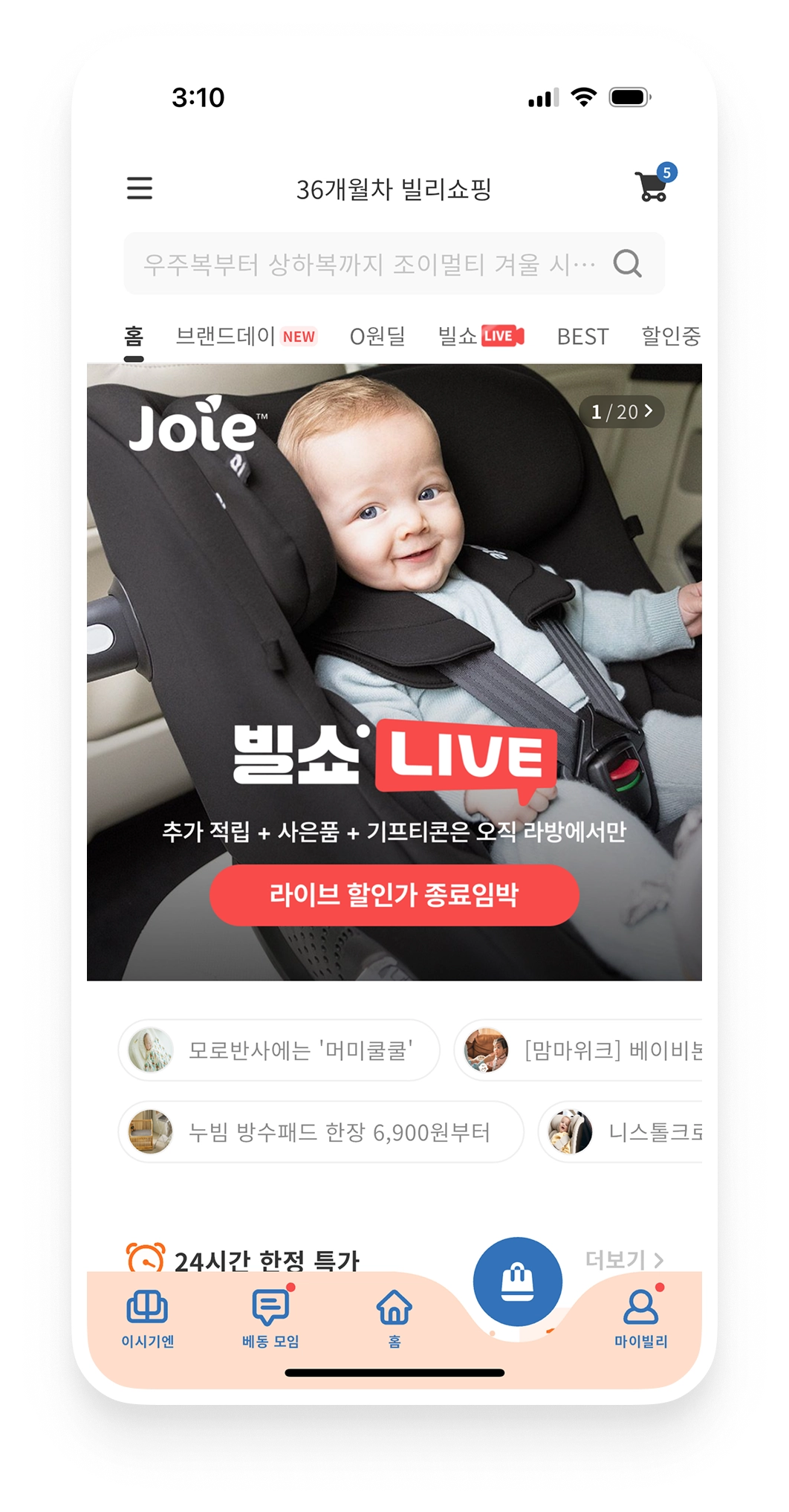 라이브 홍보 및 유입 증대를 위해 베이비빌리 앱 내 전방위 노출